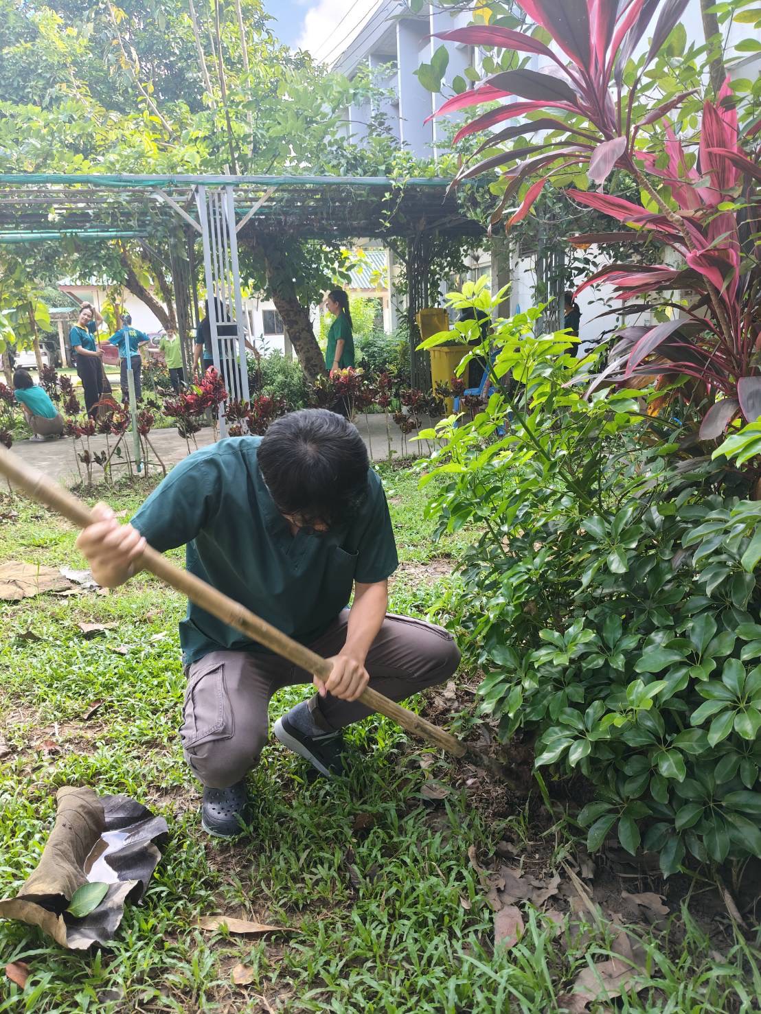 ภายในกิจกรรม เจ้าหน้าที่ได้ร่วมกันบำรุงรักษาต้นไม้ภายในบริเวณสำนักงาน โดยการพรวนดิน ใส่ปุ๋ย กำจัดวัชพืช ตัดแต่งกิ่งไม้ และปลูกดอกไม้ เพื่อสร้างสภาพแวดล้อมที่ร่มรื่นและสวยงาม